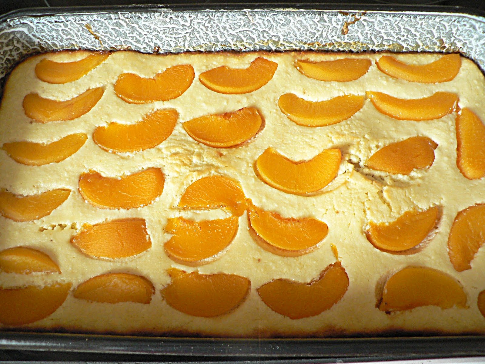 Pár perc után egyenletesen rákenjük a túrós krémet és rárakosgatjuk a vékony szeletekre vágott őszibarackot.